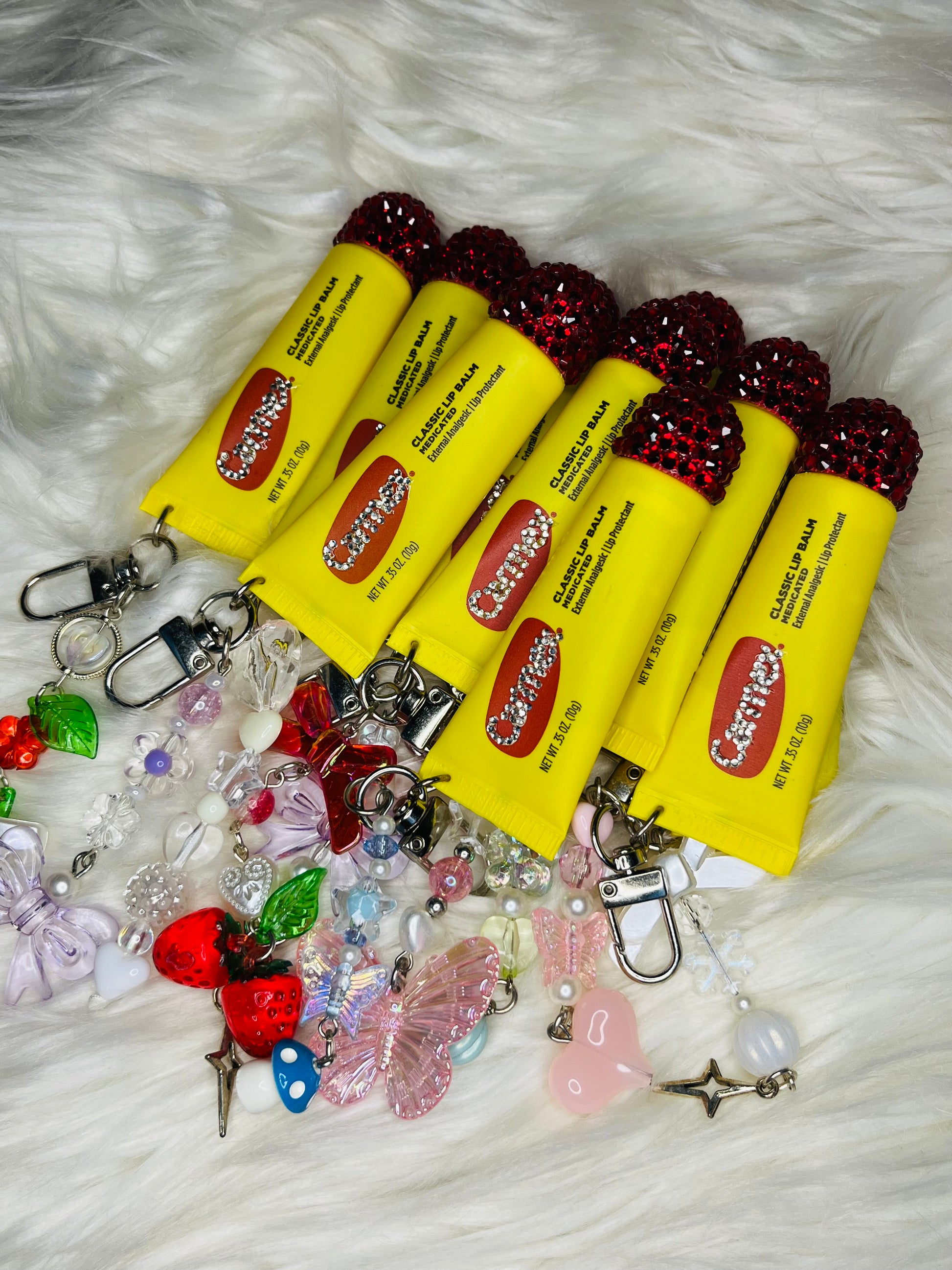 Elevate your lip game with these Bling Carmex Lip Gloss Keychains! Adorned with adorable charms, they're the perfect blend of glam and practicality. Pop one on your bag, and you’ll never miss a chance to shine (and moisturize) on the go! Kiss dry lips goodbye!