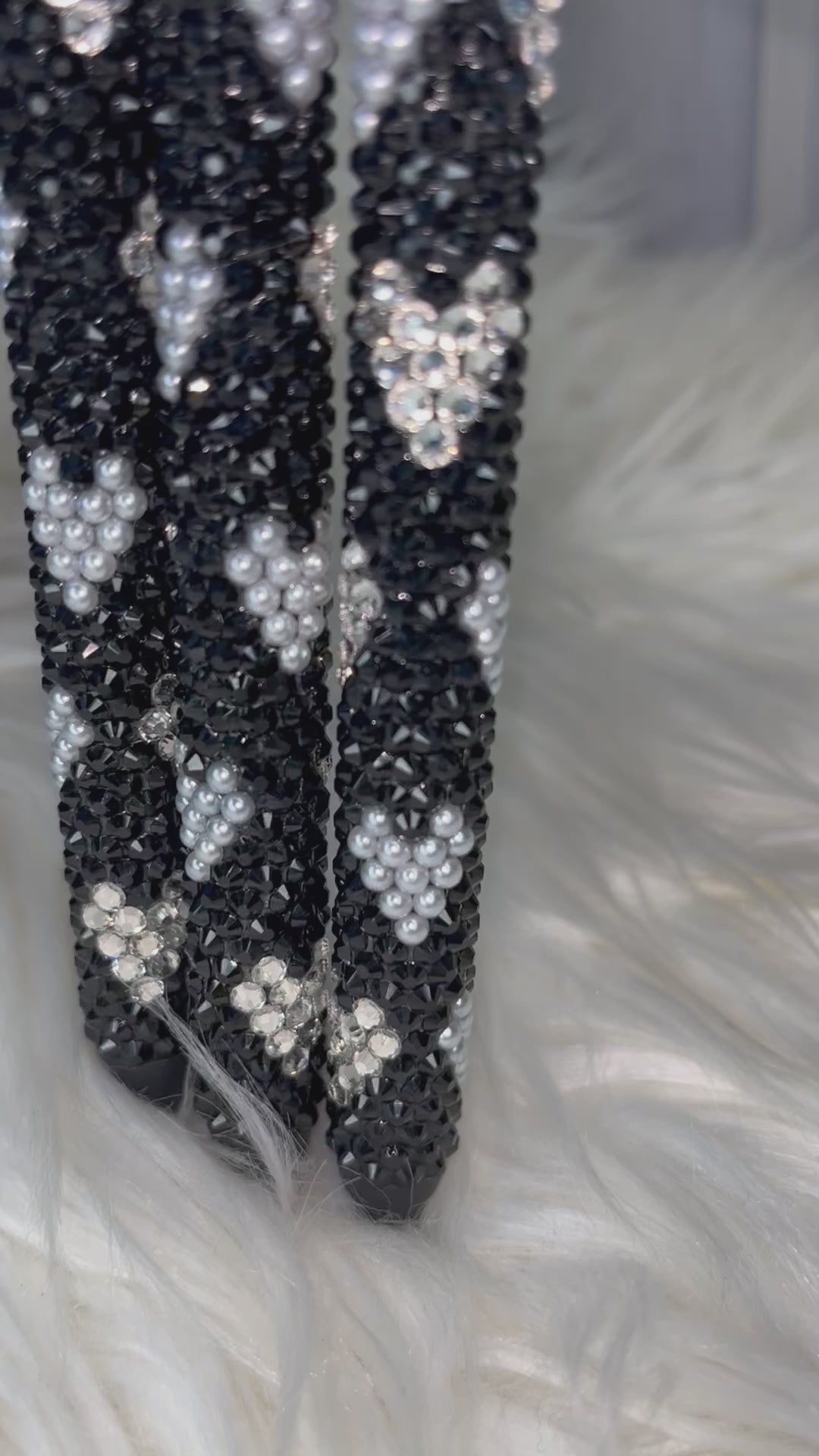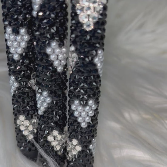 “Classic Love” just screams old-fashioned romance with an allure of pure divine elegance. Coated with Jet Black glass rhinestones, its pure white pearl and crystal hearts beautifully reflect a starry sky on a lovely evening out.