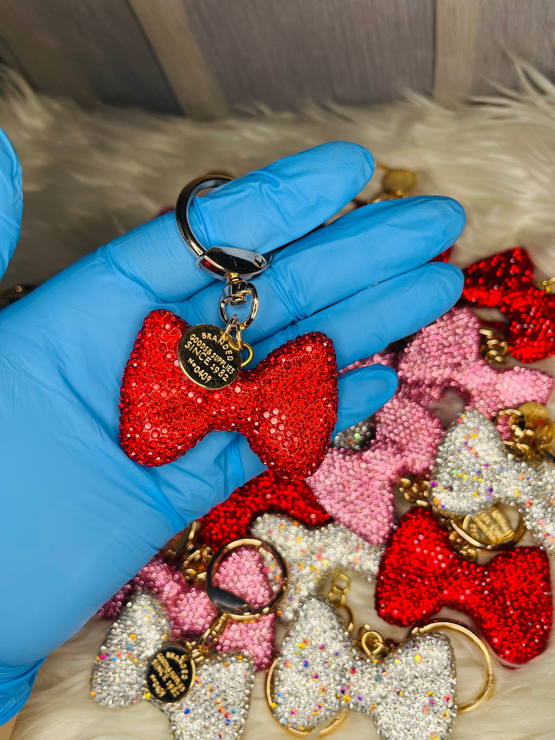 For all the girlies who love all things cute, coquette, and coated in crystalsβ¦this keychain is for you! π€ππ Front to back, these bows are adorned with rhinestones, giving it a weighty feel just perfect for your house, car, and work keys! π